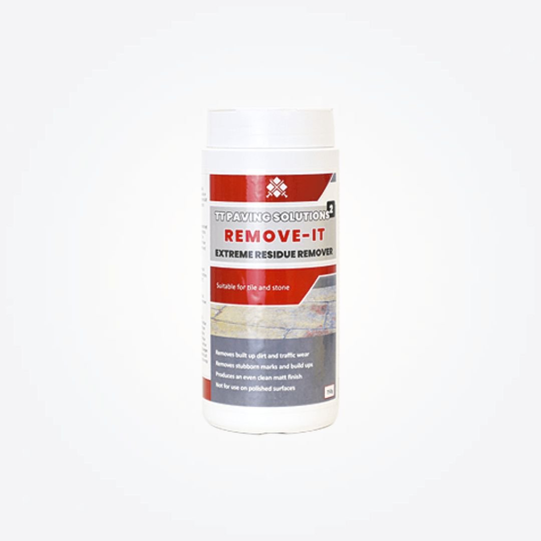 Remove-IT Extreme Residue Remover has been specifically designed to be used on porcelain tiles and natural stone to help clean extremely stubborn stains.  Remove-IT Extreme Residue Remover is a safe, non-acidic, easy-to-use cleaning powder. It will help remove built-up dirt and traffic wear, and stubborn marks and build-ups to produce an even clean matt finish.